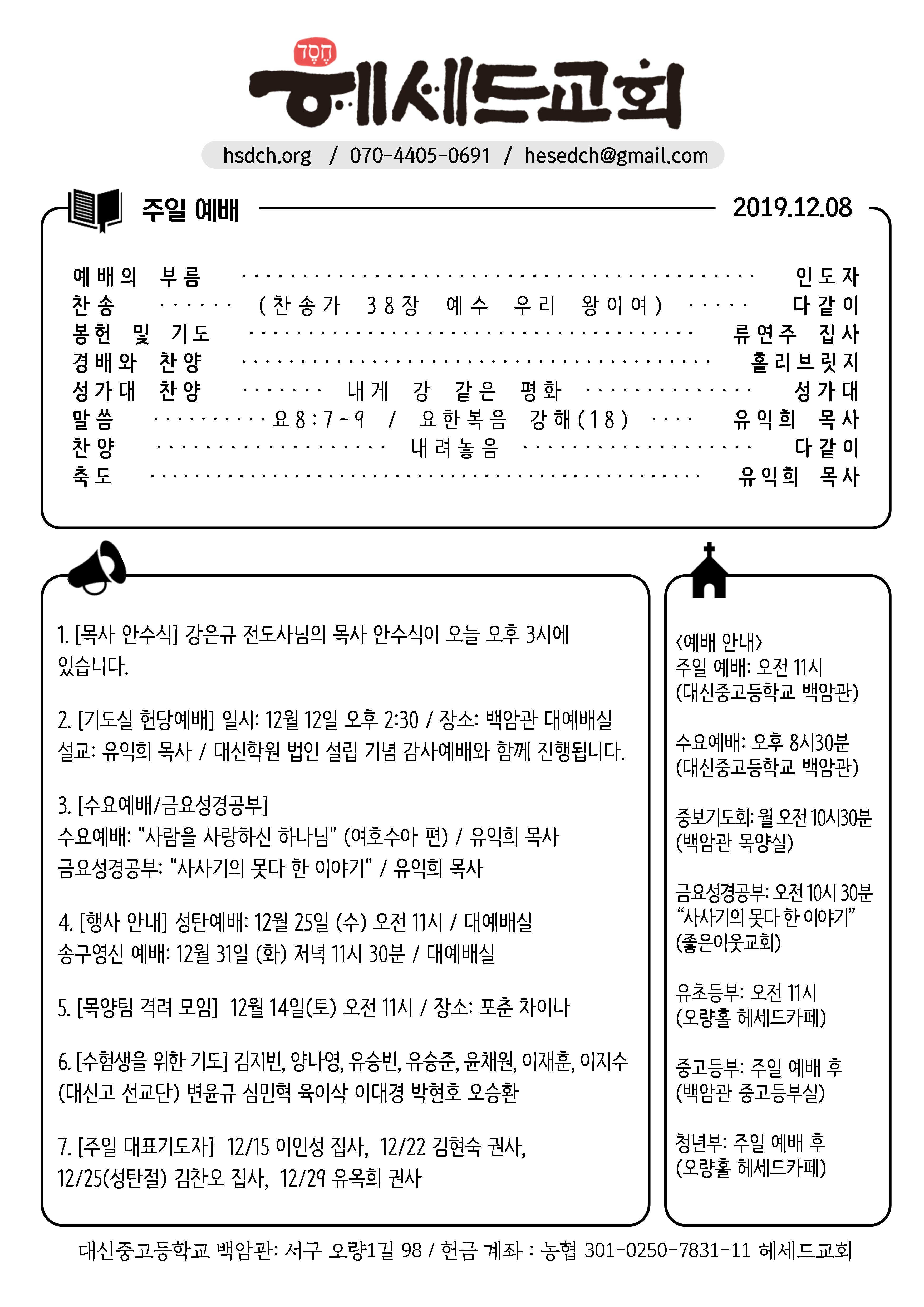 2019-12-08 주일예배 주보
