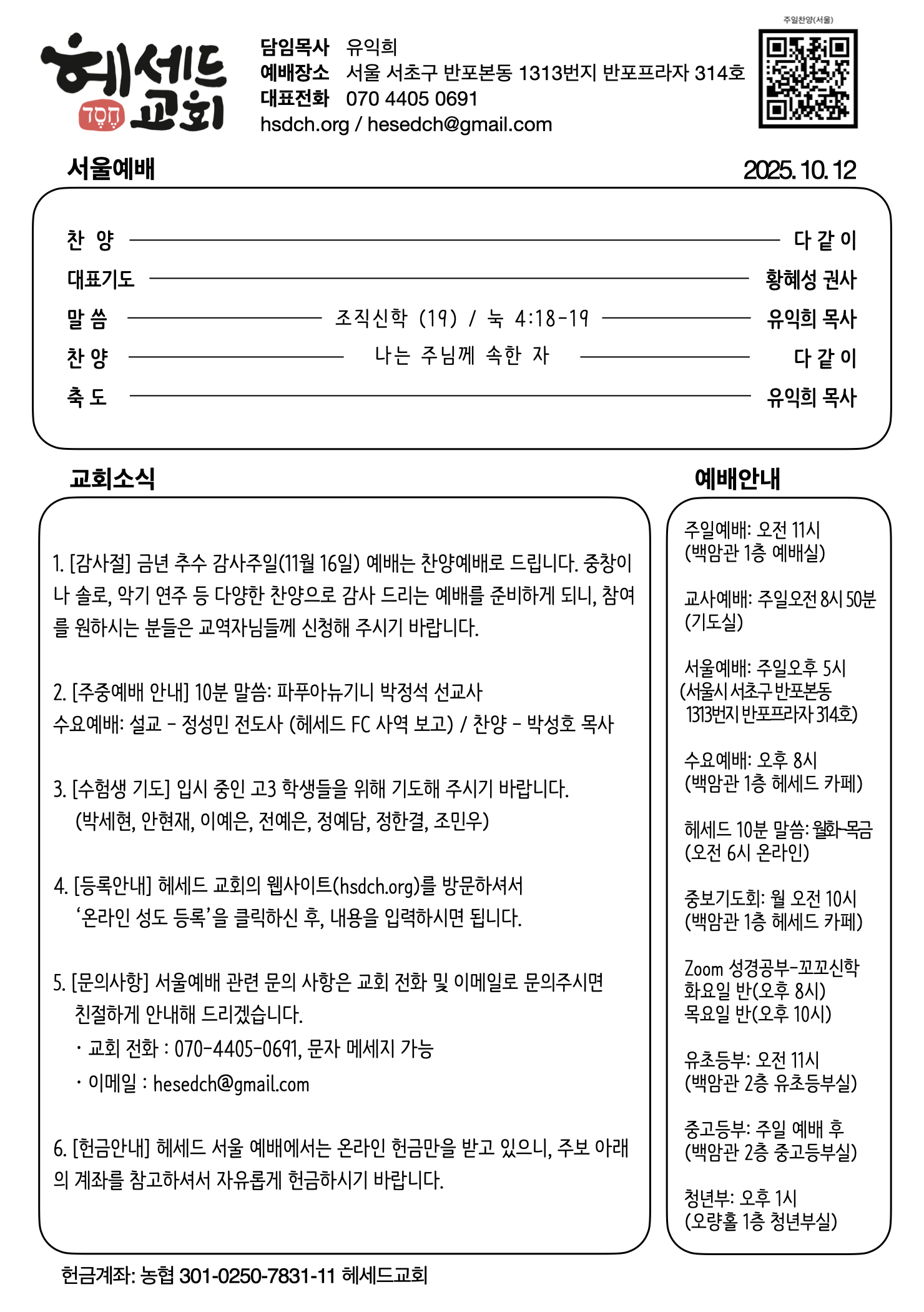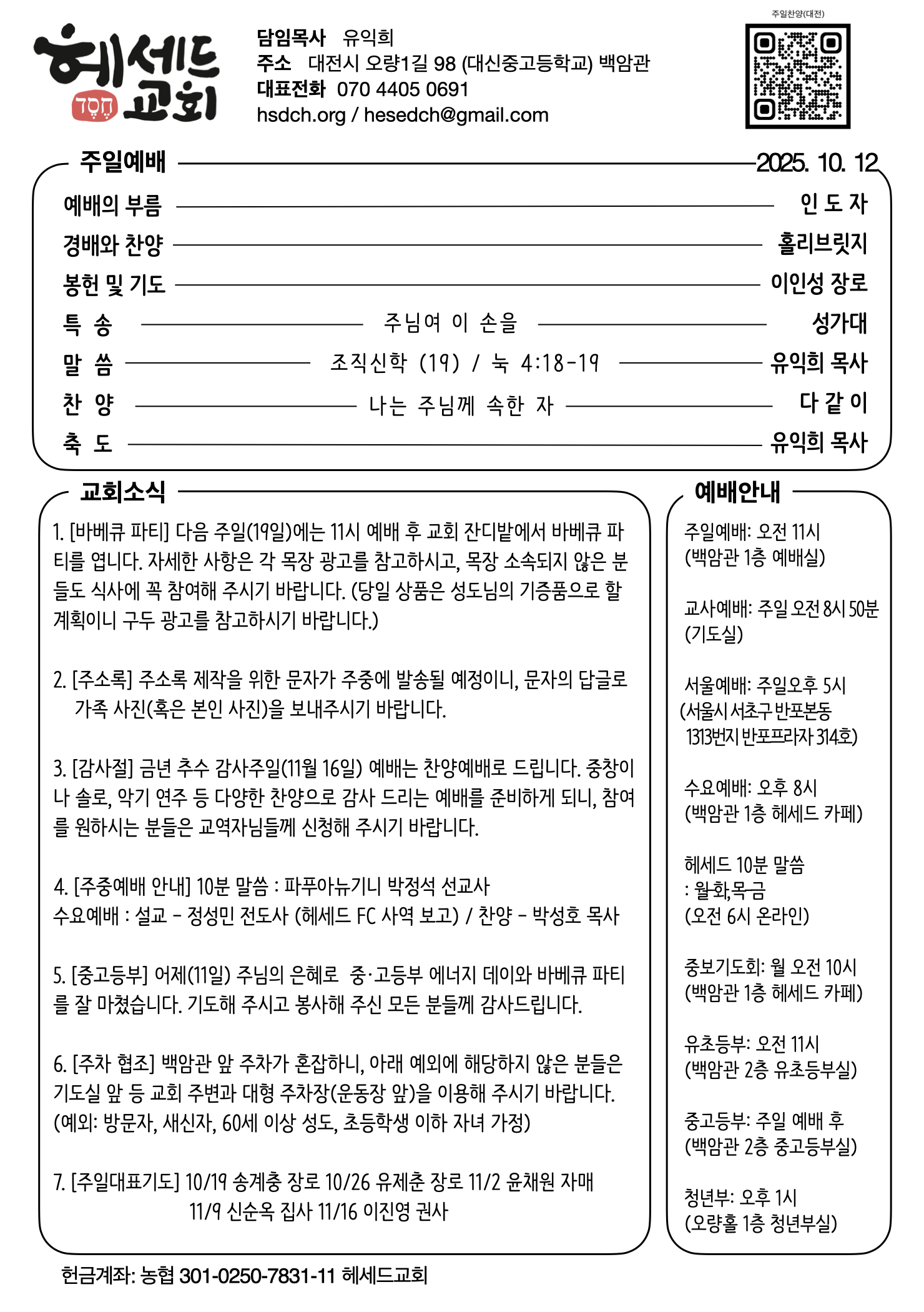 2025.10.12 주일 예배 주보