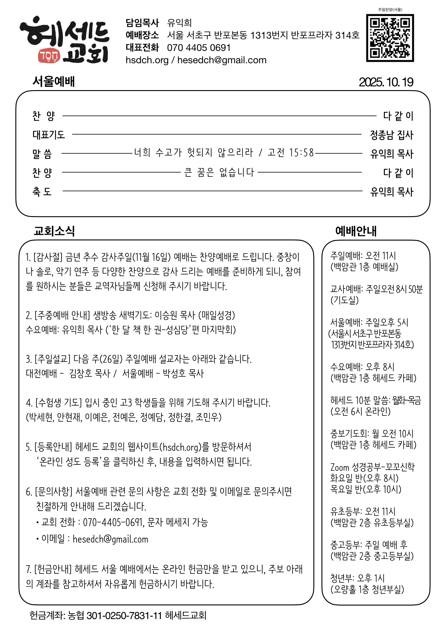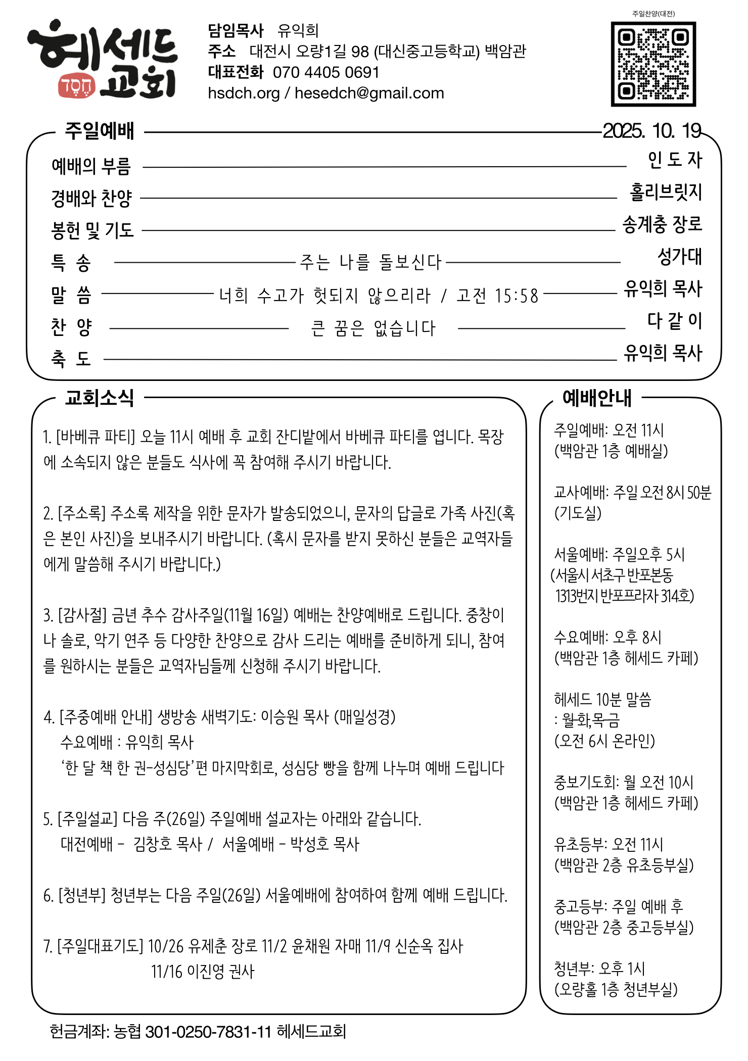 2025.10.19 주일 예배 주보