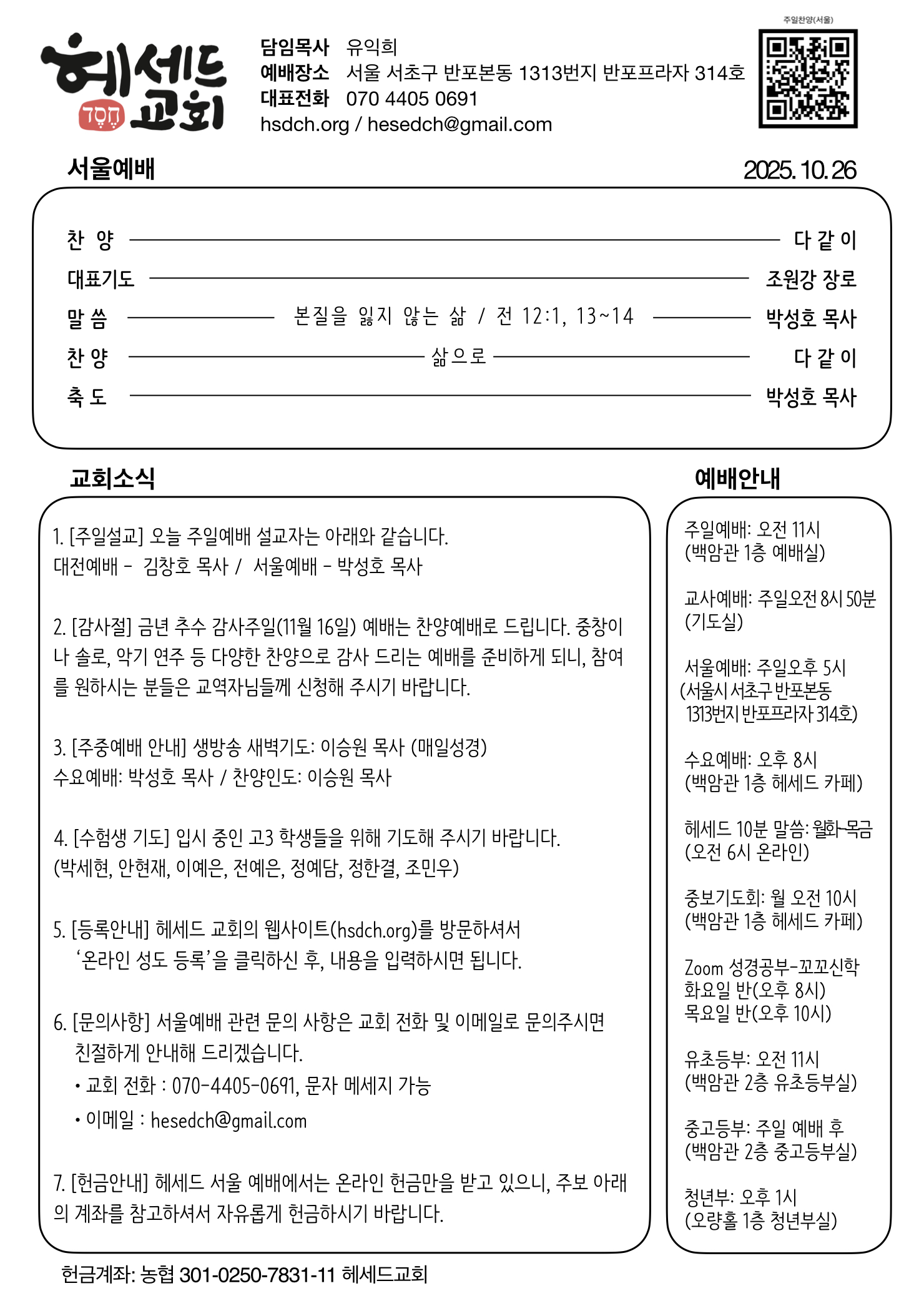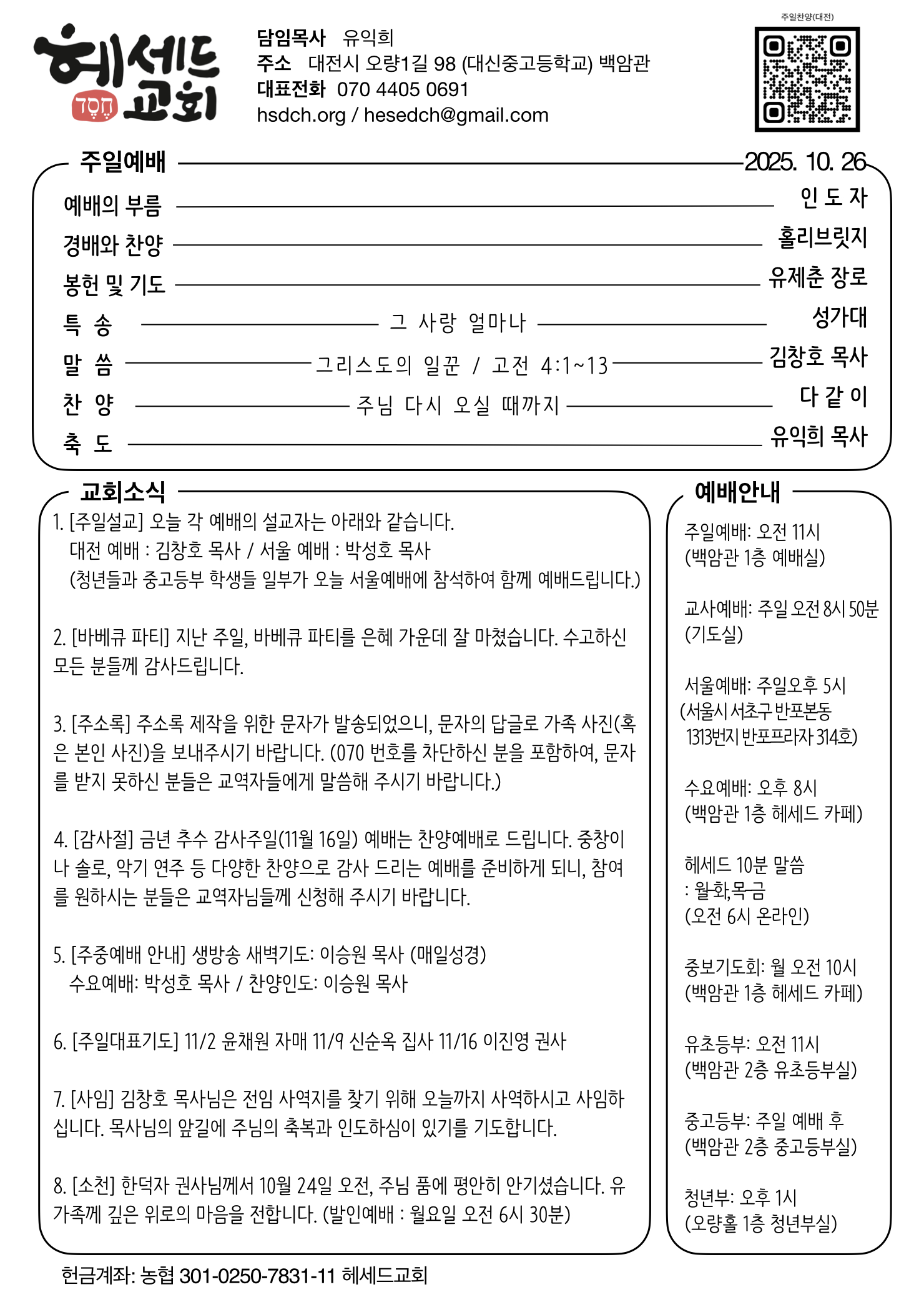 2025.10.26 주일 예배 주보